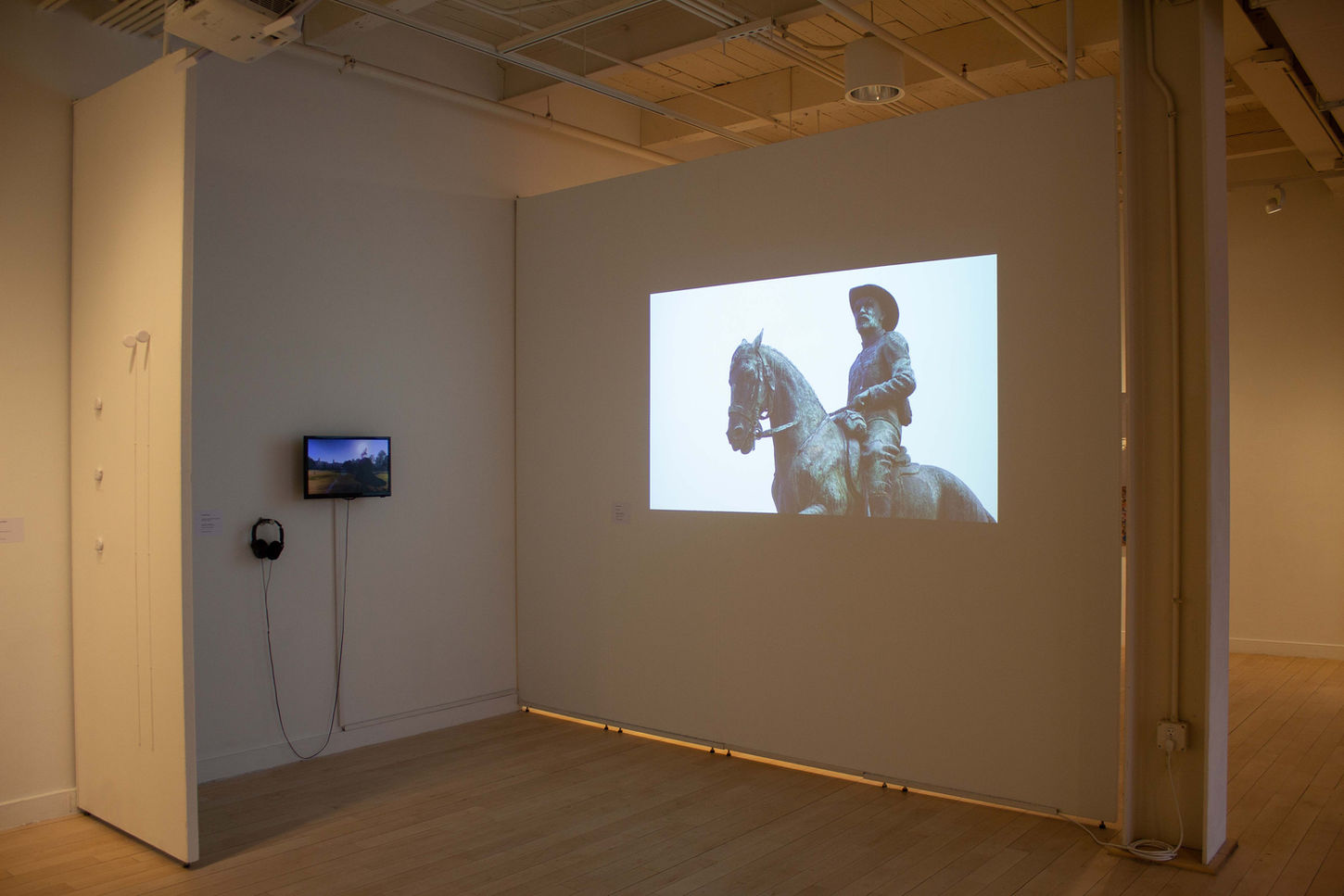 Installation view of Rising-falling, 2021. High definition video, stereo soundtrack, 3 minutes 45 seconds, (looped). Courtesy of the Johannesburg Institute for Advanced Study and Diversity Art Forum
