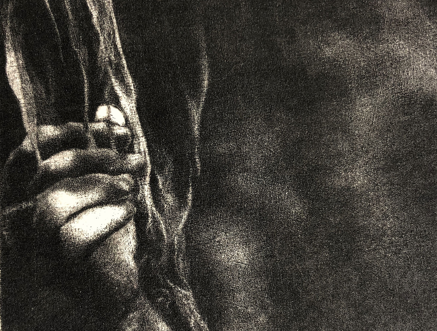 Amnos, (detail), 1993. Copperplate mezzotint etching. Image 9 x 7 cm. Edition 10